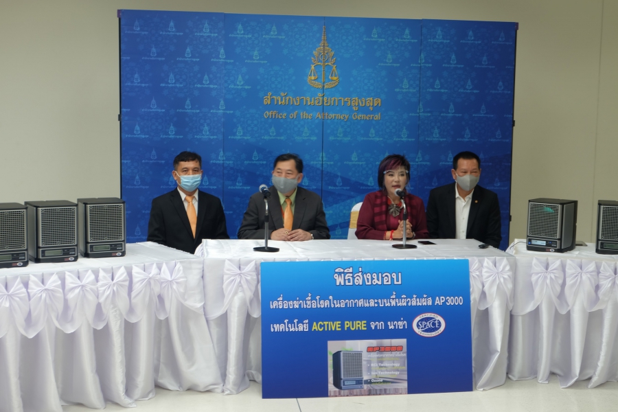 สำนักอัยการสูงสุด. โดยท่านธีระวัฒน์ พุฒิบูรณวัฒน์ เลขานุการสำนักอัยการสูงสุด มีความห่วงใยสุขภาพบุคลากรเจ้าหน้าที่ทุกสำนักอัยการสูงสุด รวมถึงประชาชนที่มาติดต่อราชการ จึงได้มีการติดตั้งเครื่องฟอกอากาศฆ่าเชื้อ AP3000 จำนวน 20 ตัว ด้วยเทคโนโลยีแอคทีฟเพอร์ ( ACTIVE PURE) นวัตกรรมที่ใช้กรองอากาศภายในกระสวยอวกาศองค์การนาซ่า ของสหรัฐอเมริกา มีจุดเด่นในการแก้ปัญหาต้นเหตุ ตัดวงจรการติดเชื้อให้ได้ทั้งทางอากาศและบนพื้นผิว ป้องกันให้บุคคลากรปลอดภัยต่อการติดเชื้อในระยะยาว รวมทั้งดับกลิ่น และกำจัดฝุ่นละออง PM2.5 ได้ในเวลาเดียวกัน