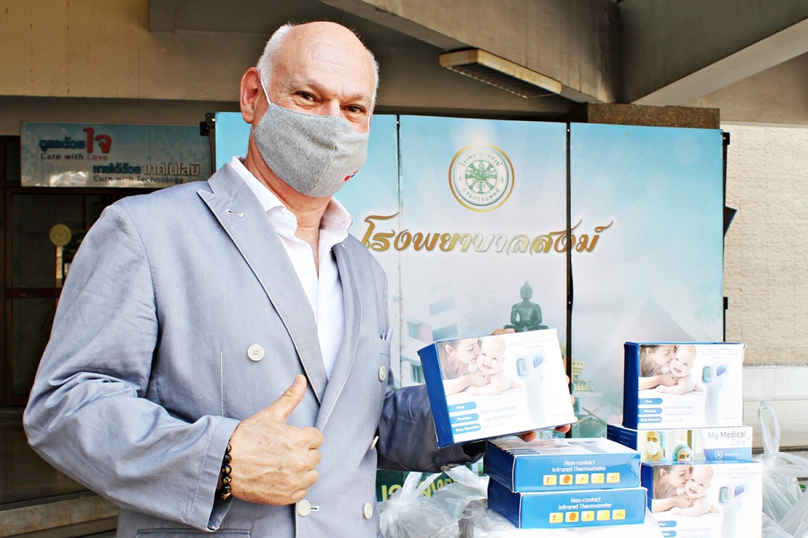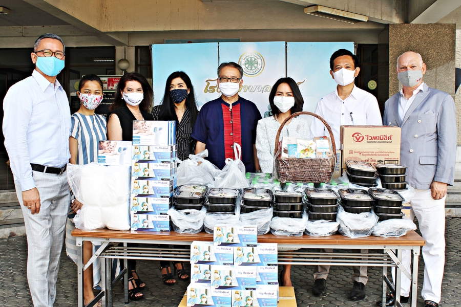 คุณกฤติยาณี พรมแพง ผู้บริหาร เคพีพี เอ็ม โกลด์บอล จำกัด และ ซัสเตนเลินนิ่ง แอลแอลซี, มิสเตอร์ เอเดรน บล้อค คาโดน่า ไนท์ ออฟ มาลต้า คุณ สุรศักดิ์ สาโท กรรมการผู้จัดการ บริษัท ไลฟ์สไตล์ แอสเซตจำกัด และเพื่อนๆ กัลยาณมิตรผู้ใจบุญ ได้แก่ คุณภัคพร พิรชัช, คุณอภิสชานันท์ กาญจนธวัชวิทูร, คุณสมชัย รัตนวรางกูร, คุณมุกข์มัสริณฎร์ แก้วมีแสง บจก. ดูดีคลับ และ T-Talents Star Managenent, และดร.ภูวษา วราสิทธิกร M Mind ร่วมกันมอบอุปกรณ์ทางการแพทย์ ได้แก่ หน้ากากอนามัยยี่ห้อ My medical care+ , อินฟราเรด เทอร์โมมิเตอร์วัดไข้ ยี่ห้อ Care+ , ชุด Rapid tester , เจลแอลกอฮอล์ ,ชุด Isolation Protective, ถุงมือ รวมถึงเครื่องมือต่างๆ ที่จำเป็นในการดูแลและป้องกันตัวเองของบุคลากรทางการแพทย์ในการป้องกันไวรัสโควิด-19 ให้แก่โรงพยาบาลสงฆ์ โดยมีคุณไชยยงค์ อรุณสุริยศักดิ์ รองผู้อำนวยการด้านอำนวยการ โรงพยาบาลสงฆ์เป็นผู้รับมอบ พร้อมถวายอาหารแก่พระสงฆ์ที่โรงพยาบาลสงฆ์