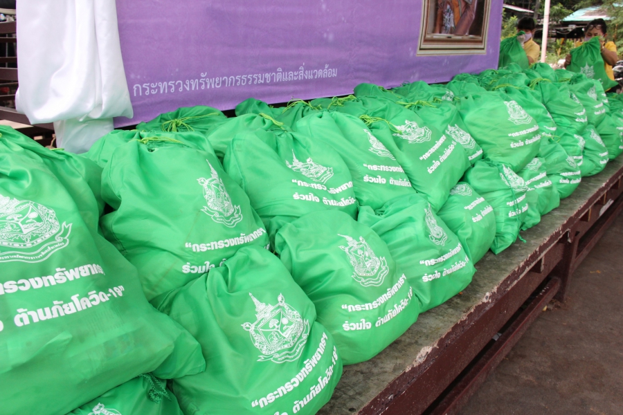 จากนั้นนายวราวุธ ศิลปอาชา รมว.ทส. ได้ทำการมอบถุงยังชีพให้แก่ประชาชนชุมชนอุทัยรัตน์ และชุมชนถวัลย์ศักดิ์ จำนวน 400 ชุด ประกอบด้วยข้าวสาร 5 กก. น้ำตาลทราย อาหารสำเร็จรูปบรรจุกระป๋อง , บะหมี่สำเร็จรูป, เครื่องยาเวชภัณฑ์, แอลกอฮอล์, สบู่, แชมพู, ยาสีฟัน เป็นต้น เพื่อช่วยบรรเทาทุกข์ผู้ประสบภัยโควิด – 19
