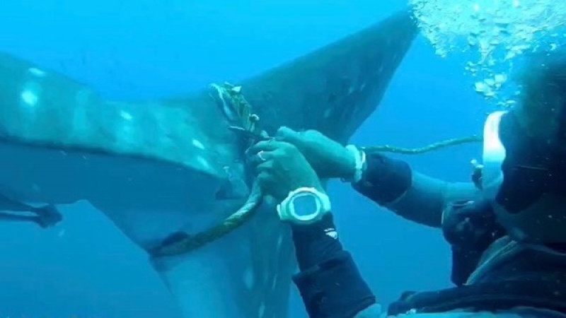 “วราวุธ” ปลื้ม “ครูพรรณี” ช่วยฉลามวาฬตัดเชือกพันหาง “กรมทะเล”ติดตามช่วยเหลือต่อ