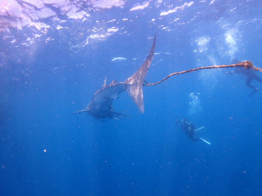 อย่างไรก็ตาม ตนได้สั่ง การให้กรมทรัพยากรทางทะเลและชายฝั่ง ติดตามและส้ารวจหาฉลามวาฬตัวดังกล่าว เพื่อช่วยตัดเชือกออก จากหางและรักษาบาดแผลที่เกิดขึ้น พร้อมให้รายงานให้ตนทราบเป็นระยะ จากเหตุการณ์ดังกล่าวสะท้อนให้ เห็นถึงผลทั้งในเชิงบวกและในเชิงลบ ในเชิงบวก ก็คือ ความสมบูรณ์ของธรรมชาติใต้ท้องทะเลเพิ่มมากขึ้น สัตว์ทะเลหายากพบเห็นได้บ่อยครั้งขึ้น แต่ในทางกลับกัน ก็ยังสะท้อนถึงปัญหาขยะทะเลที่ยังคงวนเวียนสร้าง ความเสียหายและความสูญเสียต่อสัตว์ทะเลในท้องมหาสมุทรทั่วโลก สิ่งนี้ยิ่งเป็นการตอกย้ำเราทุกคนถึงผล จากการกระทำอย่างขาดจิตสำนึก สัตว์ทะเลป้องกันตัวเองจากขยะทะเลไม่ได้ สัตว์ทะเลไม่สามารถบอกหรือ ขอร้องให้เราหยุดการกระท้าที่ท้าร้ายพวกเขาเหล่านั้น แต่เราทุกคนสามารถคิดใหม่เพื่อลดปัญหาขยะล้นทะเล และช่วยชีวิตสัตว์ทะเลให้รอดพ้นจากวิกฤติปัญหาดังกล่าวได้