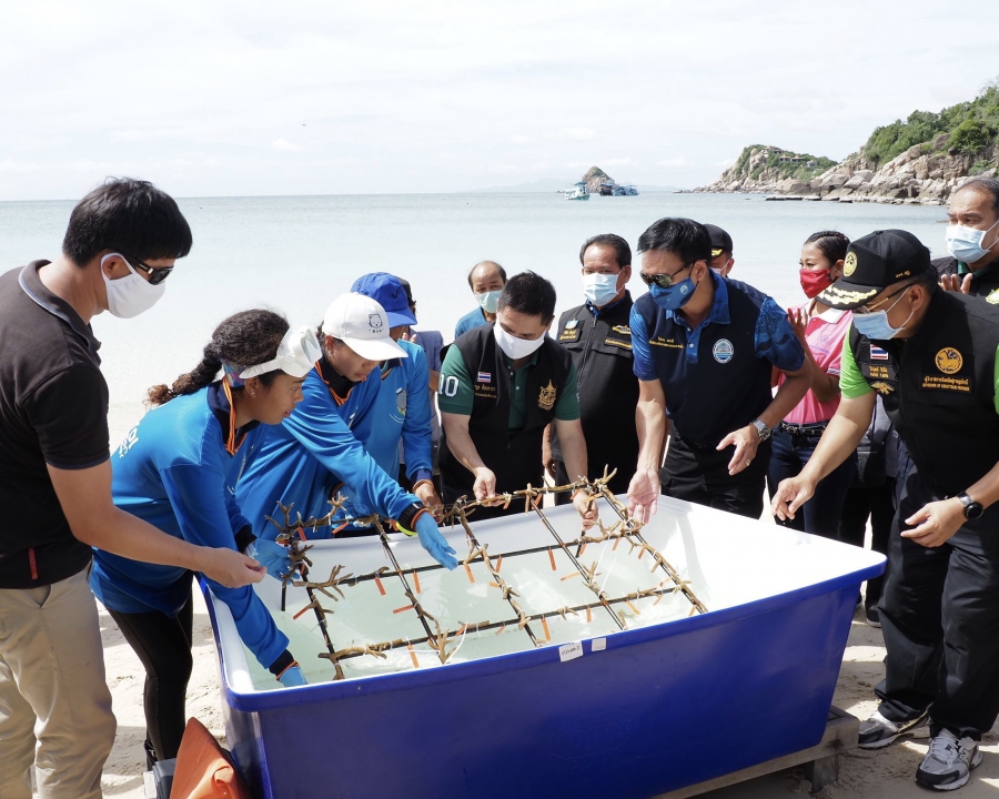 นายโสภณ ทองดี อธิบดีกรมทรัพยากรทางทะเลและชายฝั่ง กล่าวว่า กรมทรัพยากรทางทะเลและชายฝั่งได้ดำเนินการจัดตั้งหน่วยอนุรักษ์ทรัพยากรทางทะเลเกาะพะงัน (เกาะเต่า) จ. สุราษฎร์ธานี ตามแนวนโยบาย รมว. ทส. เพื่อเป็นหน่วยประสานและดำเนินงานด้านการบริหารจัดการทรัพยากรทางทะเลและชายฝั่งในพื้นที่ พร้อมทั้งเป็นหน่วยให้ความรู้และประสานความร่วมมือกับชุมชนและนักท่องเที่ยวในพื้นที่ ทั้งนี้ ตนได้ประสานงานกับนายวิชวุทย์ จินโต ผู้ว่าราชการจังหวัดสุราษฎร์ธานี จัดทำแผนบริหารจัดการทรัพยากรทางทะเลและชายฝั่งอย่างมีส่วนร่วม ครอบคลุมพื้นที่เกาะเต่า เกาะพะงัน เกาะสมุย และแหล่งทรัพยากรทางทะเลและชายฝั่ง จังหวัดสุราษฎร์ธานี เพื่อรองรับการท่องเที่ยวที่จะกลับเข้าสู่ภาวะปกติในเร็ว ๆ นี้ โดยจะเน้นการท่องเที่ยวอย่างมีคุณภาพ คำนึงถึงระบบนิเวศและคงความสมบูรณ์ของทรัพยากรธรรมชาติและสิ่ง