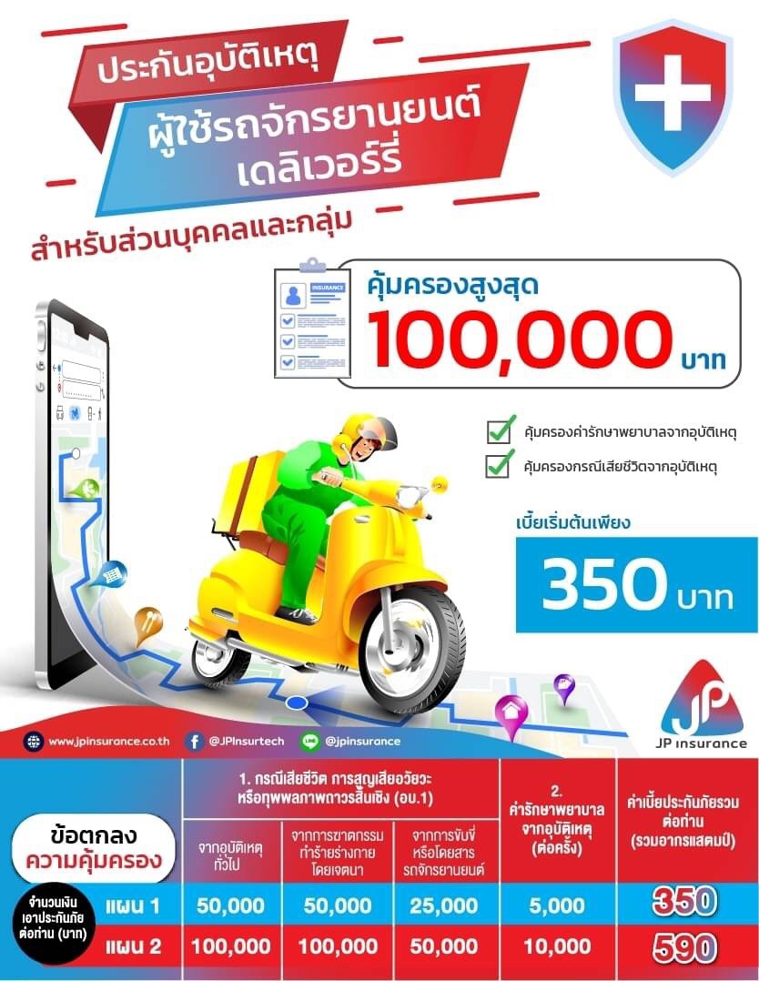 นอกจากนี้ บริษัทยังมีประกันแบบกึ่งออนไลน์ อย่างประกันภัยอุบัติเหตุสำหรับพนักงานขนส่งสินค้า (เดลิเวอรี่) ซึ่งปกติแผนประกันอุบัติเหตุส่วนใหญ่จะยกเว้นอาชีพที่เกี่ยวข้องกับการใช้รถจักรยานยนต์ แต่บริษัทมองว่าด้วยสถานการณ์ปัจจุบันผู้ประกอบอาชีพนี้มีค่อนข้างมากและอำนวยความสะดวกให้กับผู้บริโภคทำให้สะดวกในการจับจ่ายซื้อสินค้ากัน จึงทำแผนประกันภัยสำหรับพนักงานเดลิเวอรี่ขึ้นมาเฉพาะ เพื่อให้ความดูแลพนักงานกลุ่มนี้ ด้วยเบี้ยประกันเริ่มต้นเพียง 350 บาทต่อปี