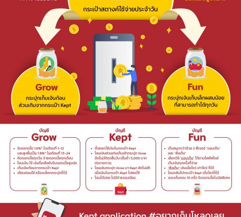 Kept นวัตกรรมบริหารเงินแพลตฟอร์มใหม่ในรูปแบบแอปพลิเคชั่น มาพร้อมฟีเจอร์ชาญฉลาดออมเงินอัตโนมัติ ให้การออมเงินเป็นเรื่องง่ายและสนุก ผ่าน 3 บัญชี Kept / Grow และ Fun