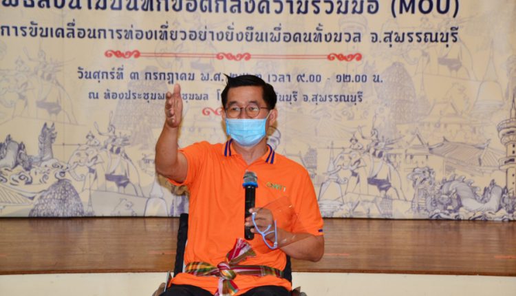 นายณัฐปคัลภ์ อัครวิชญ์ ผู้อำนวยการการท่องเที่ยวแห่งประเทศไทย (ททท.) สำนักงานสุพรรณบุรี กล่าวว่า การท่องเที่ยวเพื่อคนทั้งมวล หรือ Tourism for All เป็นสิ่งที่ทั่วโลกกำลังให้ความสำคัญ การท่องเที่ยวแห่งประเทศไทย มีการสนับสนุนเรื่องการท่องเที่ยวเพื่อคนทั้งมวลอย่างต่อเนื่อง ที่ผ่านมามีโครงการที่สร้างแรงบันดาลใจให้นักท่องเที่ยวทุกกลุ่ม โดยเฉพาะผู้พิการและผู้สูงอายุได้ออกมาเปิดประสบการณ์เดินทางท่องเที่ยวในแหล่งท่องเที่ยวที่พร้อมด้วยอารยสถาปัตย์เพื่อคนทั้งมวล (Friendly Design) ทุกภูมิภาคในประเทศไทย ตัวอย่างเช่น