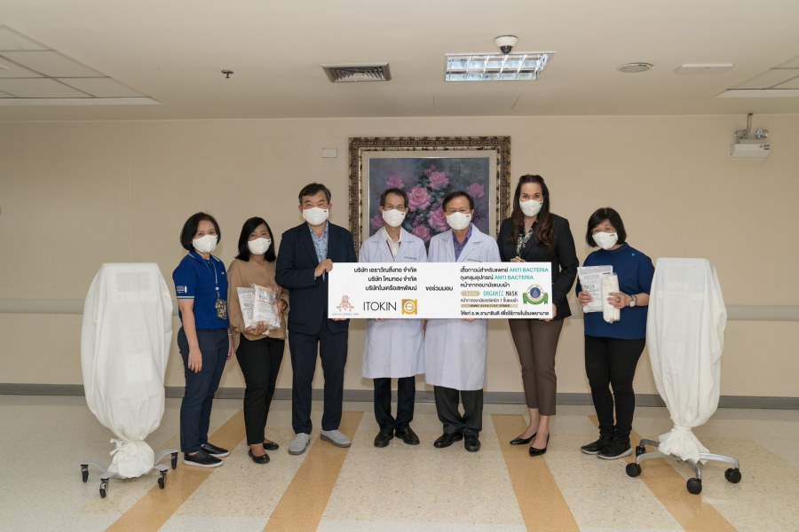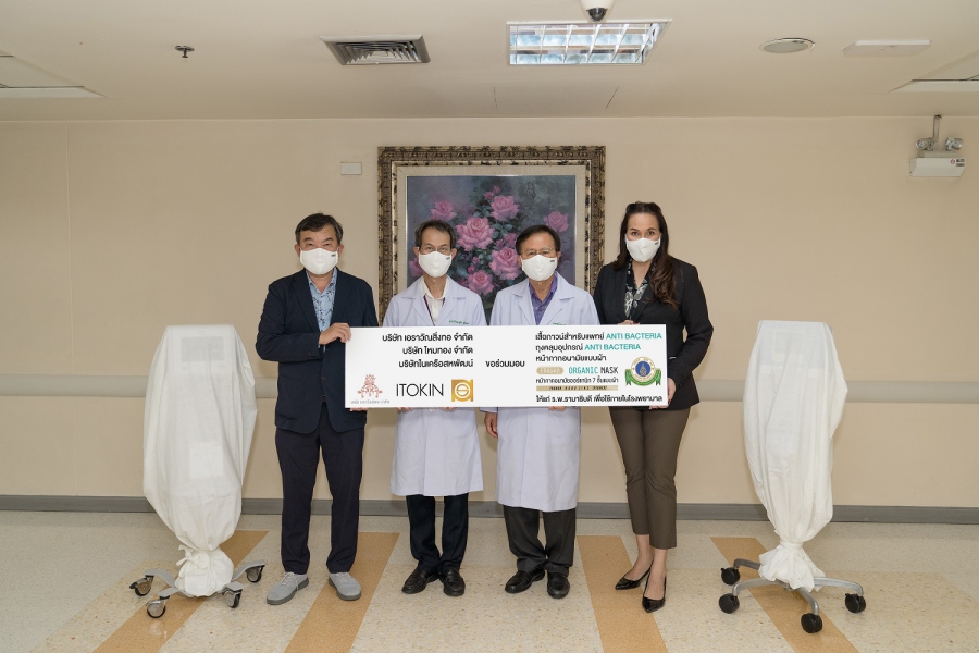 นายแพทย์ สุกิจ แย้มวงษ์ ผู้อำนวยการศูนย์การแพทย์สมเด็จพระเทพรัตน์ คณะแพทยศาสตร์ โรงพยาบาลรามาธิบดี และ ศาสตราจารย์ นายแพทย์ อร่าม โรจนสกุล กรรมการผู้จัดการบริษัท อาร์เอฟเอส จำกัด บริษัทภายใต้การกำกับดูแลของคณะแพทยศาสตร์โรงพยาบาลรามาธิบดี หน่วยงานที่มีหน้าที่ดูแลงานด้านระบบสิ่งสนับสนุนโรงพยาบาลรามาธิบดี เป็นประธานรับมอบผลิตภัณฑ์ทางการแพทย์ ได้แก่ 1.เสื้อกาวน์แพทย์แอนตี้แบคทีเรีย (Gowns uniform with ERAWAN NANO ZINC )จำนวน 45 ตัว 2.หน้ากากอนามัยแอนตี้แบคทีเรีย ERAWAN ORGANIC MASK 7 LAYERS จำนวน 500 ชิ้น และ 3.ถุงคลุมอุปกรณ์ทางการแพทย์แอนตี้แบคทีเรีย จำนวน 100 ชิ้น รวมมูลค่ากว่า 200,000 บาท เพื่อนำไปใช้ในกิจการงานทางการแพทย์ ของโรงพยาบาลรามาธิบดี จาก นาง รมิดา รัสเซลล์ มณีเสถียร กรรมการบริหารและผู้อำนวยการฝ่ายบูติคสตรี บริษัท ไอ.ซี.ซี.อินเตอร์เนชั่นแนล จำกัด (มหาชน) และกรรมการผู้จัดการ บริษัทไหมทอง จำกัด และ นายคมสัน ศุภมิตร์ กรรมการ บริษัท เอราวัณสิ่งทอ จำกัด ณ ห้องประชุมบรรหาร ชั้น 8 อาคารสมเด็จพระเทพรัตน์ คณะแพทยศาสตร์ โรงพยาบาลรามาธิบดี กรุงเทพฯ โดยมี นางสาว ลลิดา ไชยแสง ผู้จัดการทั่วไปสายงานด้านสิ่งสนับสนุนโรงพยาบาล บริษัท อาร์เอฟเอส จำกัด, นางสุพร ฉันทรัตนรักษา กรรมการรองผู้จัดการบริษัทไหมทอง จำกัด และ นางสาวรัชนี สุตะไล บริษัท ไหมทอง จำกัด ร่วมเป็นสักขีพยานในการรับมอบ