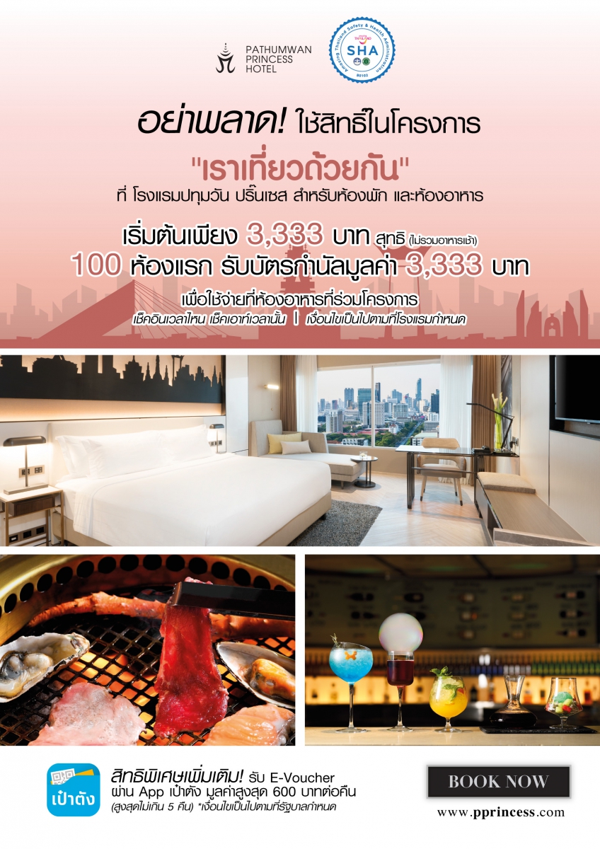 โรงแรมปทุมวัน ปริ๊นเซส จัดแคมเปญส่งความสุข กระตุ้นการท่องเที่ยวผ่านการเข้าร่วมโครงการ “เราเที่ยวด้วยกัน” เพื่อเป็นการสนับสนุนนโยบายของรัฐบาลในการผลักดันธุรกิจท่องเที่ยว กระตุ้นเศรษฐกิจ พร้อมมอบประสบการณ์แห่งความสุขในช่วงเวลาแห่งการพักผ่อนหย่อนใจด้วยมาตรฐานการบริการเหนือระดับของโรงแรมชั้นนำระดับโลก ที่ยกระดับและให้ความสำคัญสูงสุดในเรื่องสุขอนามัยความปลอดภัย ภายใต้การรับรองตามมาตรฐาน Safety & Health Administration (SHA) สร้างความมั่นใจให้กับแขกผู้มาพักและลูกค้าที่มาใช้บริการในโรงแรมตามบรรทัดฐานของโลกวิถีใหม่แบบ New Normal