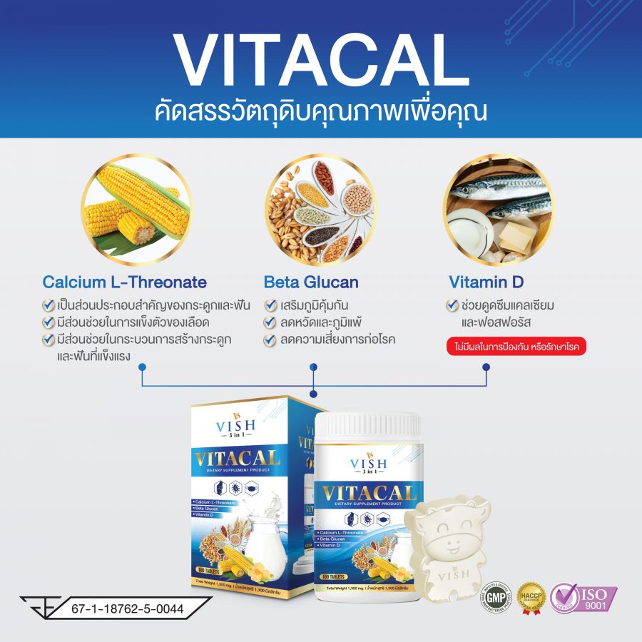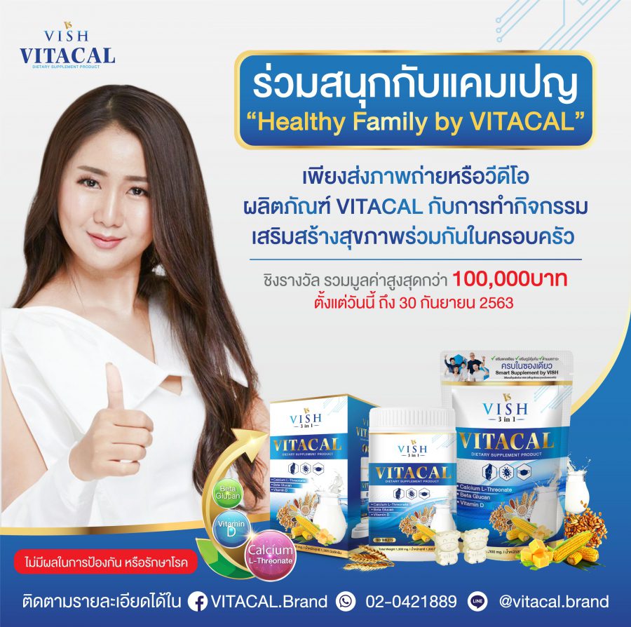 ติดตามรายละเอียดได้ในเฟสบุ๊คแฟนเพจ VITACAL.Brand หรือ www.facebook.com/VITACAL.Brand วางจำหน่ายแล้วที่ร้านขายยาชั้นนำและตัวแทนจำหน่ายอย่างเป็นทางการทั่วประเทศ ติดต่อโทร. 02-0421889 LineID:@vitacal.brand Email:vitacal.brand@gmail.com