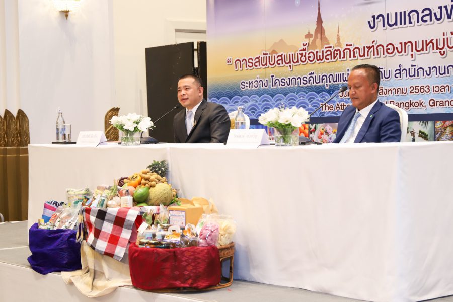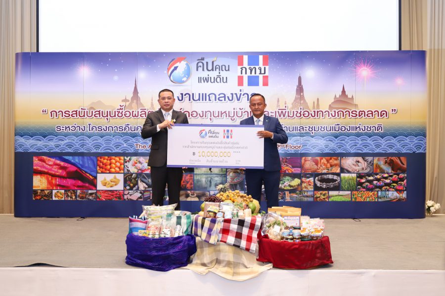 โครงการคืนคุณแผ่นดิน ประกาศความร่วมมือกับสำนักงานกองทุนหมู่บ้านและชุมชนเมืองแห่งชาติ สนับสนุนซื้อผลิตภัณฑ์และเพิ่มช่องทางการตลาด พัฒนาชุมชน เพิ่มรายได้ ลดรายจ่าย เสริมสร้างคุณภาพชีวิต โดยโครงการคืนคุณแผ่นดิน ได้ซื้อผลิตภัณฑ์จากสำนักงานกองทุนหมู่บ้าน 10 ล้านบาท พร้อมเพิ่มช่องทางการจำหน่ายสินค้าของประชาชน ชุมชนไปสู่ตลาดในวงกว้างทั่วประเทศ ผ่านแอปพลิเคชัน M-Help me มุ่งกระตุ้นเศรษฐกิจหมุนเวียนเสริมแกร่งชุมชนเติบโตอย่างยั่งยืน