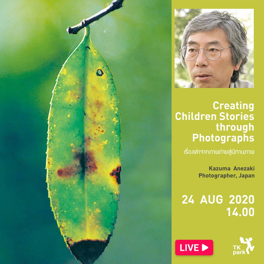 - คาซูมะ อาเนะซากิ Kazuma Anezaki นักเขียนและช่างภาพธรรมชาติ ประเทศญี่ปุ่นเรียนรู้การเล่าบนพื้นฐานของแนวคิด “เคารพธรรมชาติ” ที่มีเอกลักษณ์เฉพาะตัว ใช้ตัวละครหลักเป็นพืชพรรณธรรมชาติ ต้นไม้ ใบหญ้า นำเสนอความงามและความเรียบง่ายผ่านภาพถ่ายในมุมมองต่างๆ ได้อย่างทรงพลัง กับหัวข้อ “Creating Children Stories through Photographs” เรื่องเล่าจากภาพถ่ายสู่นิทานภาพ โดยสามารถรับชมได้ในวันจันทร์ที่ 24 สิงหาคม 2563 เวลา 14.00 น.